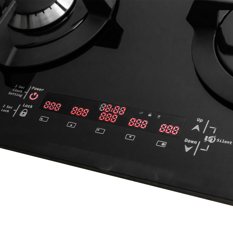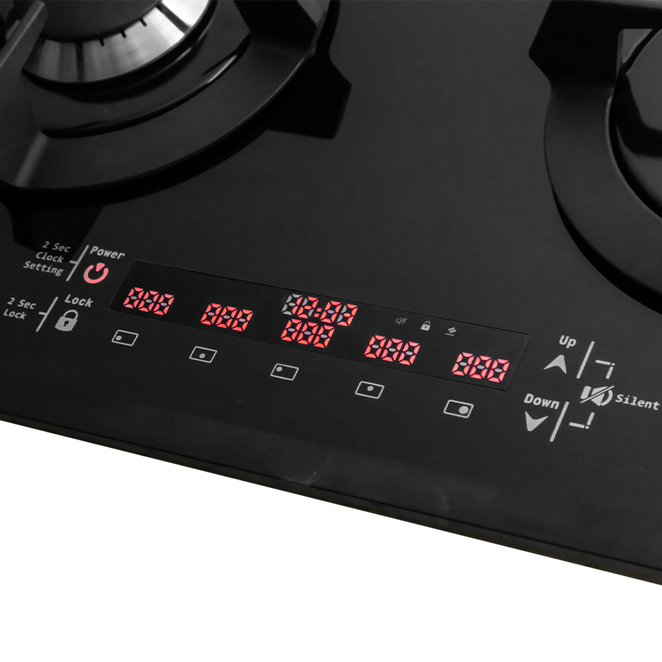 دارای تایمر مجزا برای هر شعله -صفحه شیشه 8 میلی متر سکوریت شده مقاوم در برابر ضربه و حرارت - مجهز به سیستم میکروسوئیچ نسوز - انجام تست نشت گاز - انجام تست نشت جریان الکتریسیته - انجام تست تحمل ضربه و حرارت برای شیشه -انجام تست تحمل حداکثر حرارت برای شیشه