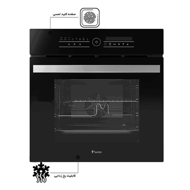 فر توکار داتیس 673 برقی – DF 673 که امکانات بسیار مثبتی برخوردار می باشد. به عنوان مثال این فر آشپزخانه دارای شیشه مشکی SCHOTT ایتالیا، دارای ۸ برنامه پخت نیمه اتومات از طریق راهنمای پخت، نظافت آسان، پوشش لعابی پشت Self cleaner و… است از ویژگی های بارز این محصول میتوان به ریل تلسکوپی آلمانی و مجهز به سیستم خنک کننده اتوماتیک اشاره نمود. فر توکار داتیس 673 برقی دارای ابعاد استاندارد برای قرارگیری در فضای توکار است. ظرفیت 78 لیتری این فر، امکان پخت انواع غذاها در اندازههای مختلف را فراهم میکند. این ظرفیت مناسب برای خانوادههای پرجمعیت یا حتی افراد حرفهای که در آشپزی نیاز به فضای بیشتری دارند، بسیار کارآمد است.