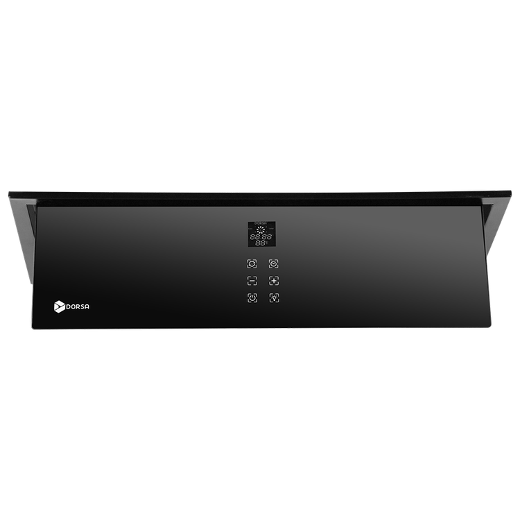 این مدل از هود مخفی درسا، دارای یک صفحه کلید لمسی عمودی با نمایشگر سون سگمنت است که کاربری راحتی را برای مصرفکننده فراهم میکند. از طریق این نمایشگر نهتنها میتوان تنظیمات هود را مشاهده و کنترل کرد، بلکه امکان نمایش دمای محیط آشپزخانه نیز فراهم شده است. همچنین، با داشتن ریموت کنترل، امکان مدیریت و کنترل دستگاه از فاصله دور فراهم است که کاربری آن را بیش از پیش آسان میکند.