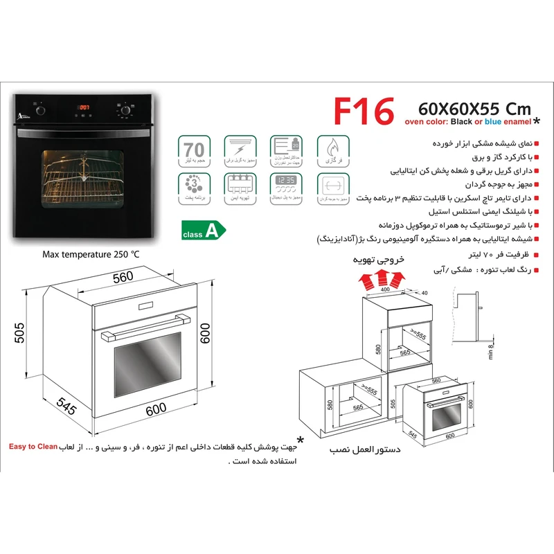 مشخصات اصلیرنگ / مشکیمشخصات فرعیرده مصرف انرژیAدستگاه نمایش وضعیتصفحه نمایشمدل طراحیفندک اتوماتیکامکانات آماده سازی غذاجوجه گردان